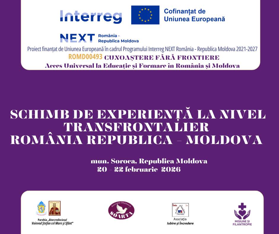 Schimb de experiență transfrontalier România – Republica MoldovaÎn perioada 29–31 ianuarie 2026, la Iași are loc primul schimb de experiență transfrontalier România–Republica Moldova, organizat în cadrul proiectului„Cunoaștere Fără Frontiere: Acces…